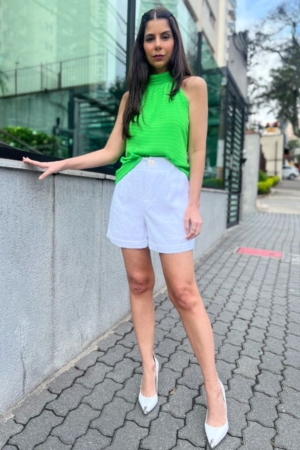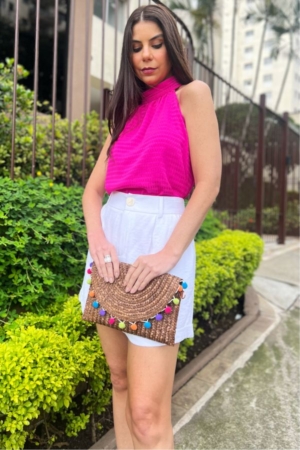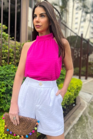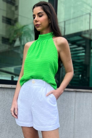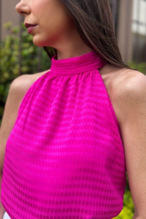 Blusa Confeccionada Em Crepe De Chiffon, Decote Halter Neck, Modelagem Ampla E Fechamento Traseiro Por Botões Encapadados. Possui Forro.