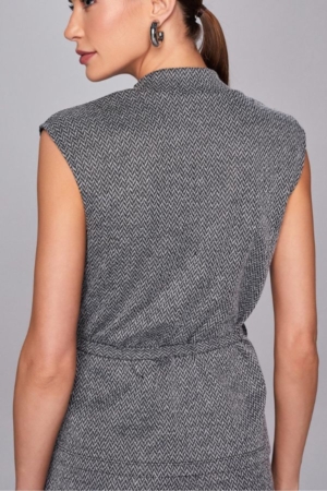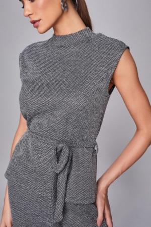 Blusa confeccionada em tricot chevron, gola alta e faixa para amarração.