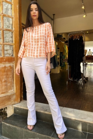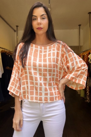Blusa Confeccionada Em Viscose, Modelo Amplo E Estampa Exclusiva.