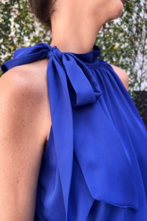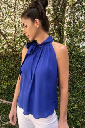Blusa Confeccionada Em Crepe Fluido E Decote Higth Neck Com Laço.