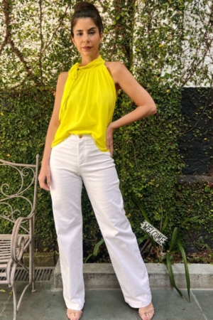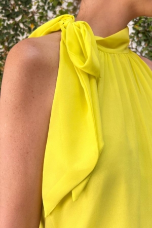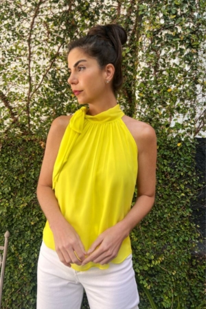 Blusa Confeccionada Em Crepe Fluido E Decote Higth Neck Com Laço.