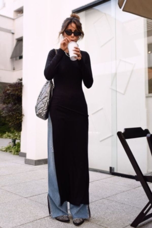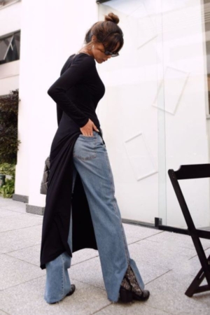 Blusa Confeccionada Em Malha De Viscose, Modelagem Alongada Com Fenda Lateral E Decote Redondo.