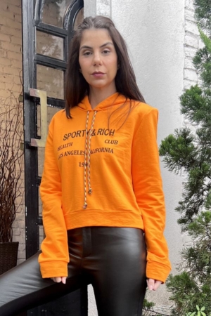 Blusa Confeccionada Em Moletom, Modelagem Quadrada, Aplicação De Ombreiras, Touca Com Cordão Para Ajuste E Bordado Na Frente.