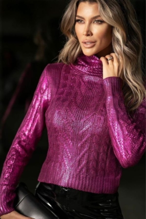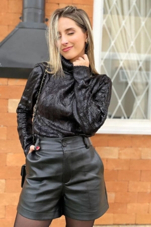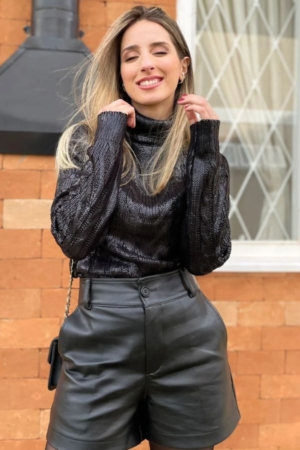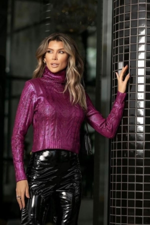 Blusa Confeccionada Em Tricot Encerado Com Gola Alta.