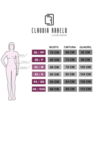 Composição: 70% Poliéster / 30% Viscose – Detalhe: 93% Viscose / 7% Elastano