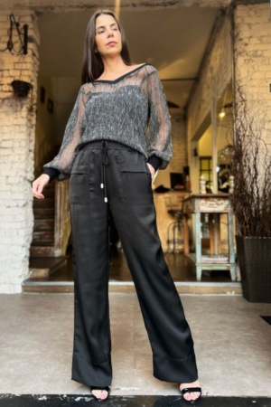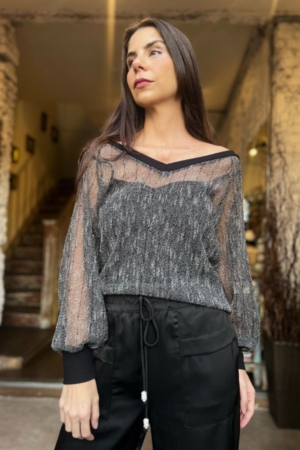 Blusa Confeccionada Em Tela Com Aplicação De Paetês, Malha Canelada Nos Punhos E Gola. Acompanha Blusa Underwear.