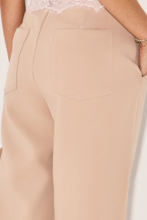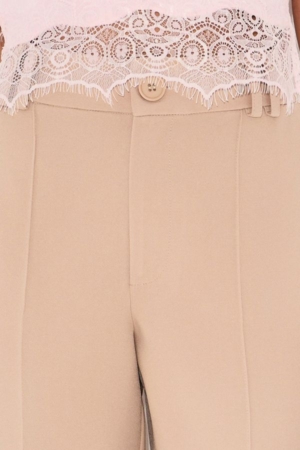Calça em afaiataria, modelo reto, com detalhe em friso, bolsos laterais e fechamento dianteiro por zíper e botão.