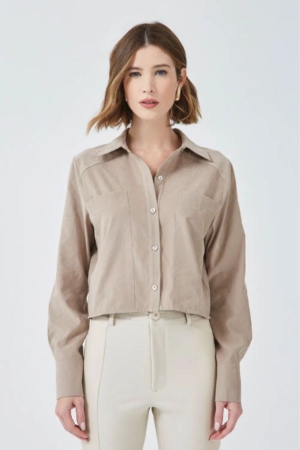 Camisa confeccionada em tecido tecnológico, bolsos dianteiros e fechamento dianteiro por botoes.