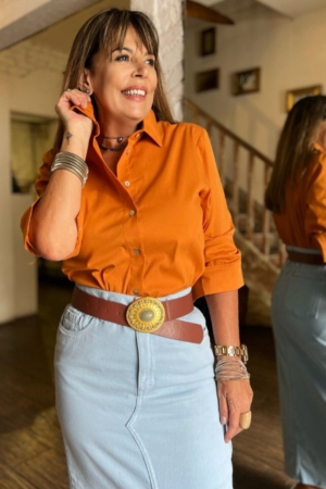 Camisa Confeccionada Em Algodão Com Fechamento Frontal E Nos Punhos Por Borão De Madrepérola.