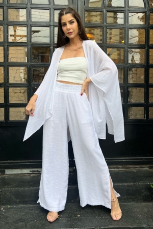Cropped confeccionado em malha com aplicação de paetê, decote tomara que caia e possui forro interno.