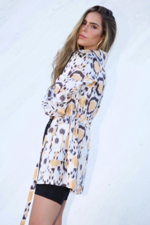 Jaqueta corta vento, mangas longas com aplicação de elástico nos punhos, gola com ajuste de cordão, bolsos dianteiros, faixa para ajuste na cintura, fechamento dianteiro por zíper e estampa exclusiva da marca.