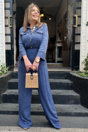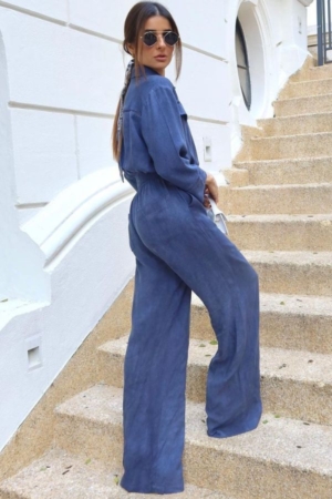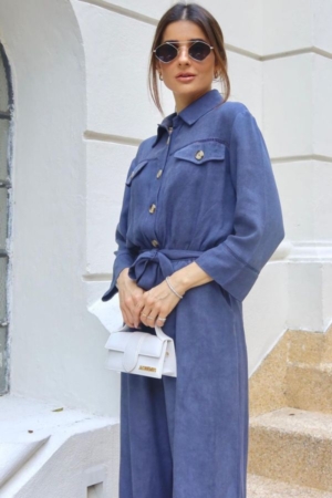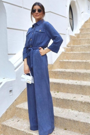 Macacão Confeccionado Em Viscose Sarjada, Detalhes De Entremeio, Mangas 7/8, Bolsos Laterais, Aplicação De Elástico Na Cintura E Fechamento Dianteiro Por Botões. Acompanha Faixa Para Ajuste Na Cintura.