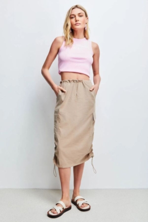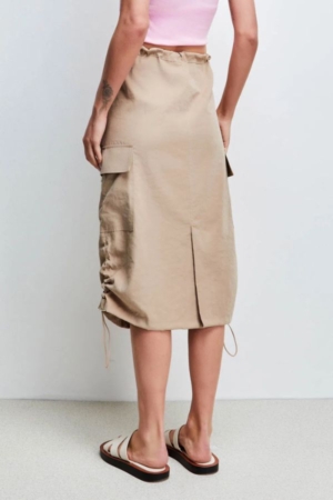 Saia Confeccionada Em Tecido Tecnológico, Modelo Cargo, Com Aplicação De Elástico Na Cintura E Laterais Com Ponteiras.