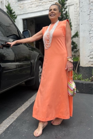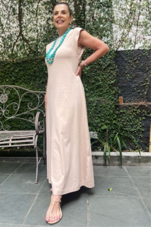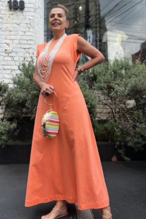 Vestido Confeccionado Em Algodão, Gola E Cava Com Recorte Em Malha Canelada E Acompanha Faixa Para Ajuste Na Cintura.